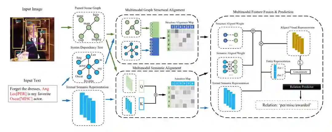 3. 第三,为了充分利用图像信息进行多模态关系提取,我们分别对齐多模态特征的结构和语义信息,以捕捉多模态信息之间的多视角相关性。然后,我们有效地合并两个对齐的结果;