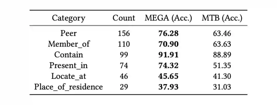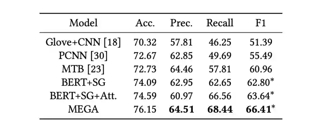 ▲ 表2. MEGA模型与其他关系抽取模型的对比结果