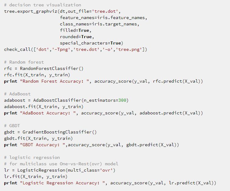 使用 sklearn 用决策树来进行莺尾花数据集的划分问题。代码上没有固定随机种子,所以每次运行的结果会稍有不同。