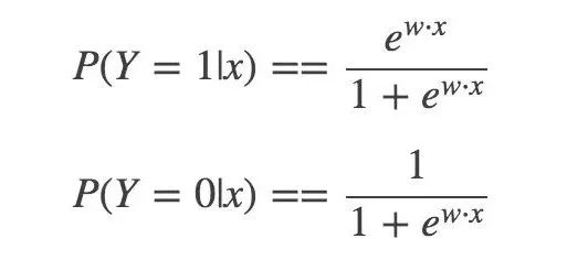 然后,二分类 LR 模型,是参数化的 logistic 分布,使用条件概率来表示: