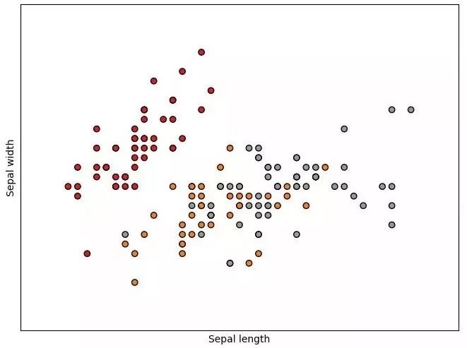 在 Sepal length 和 Sepal width 二维上的可视化: