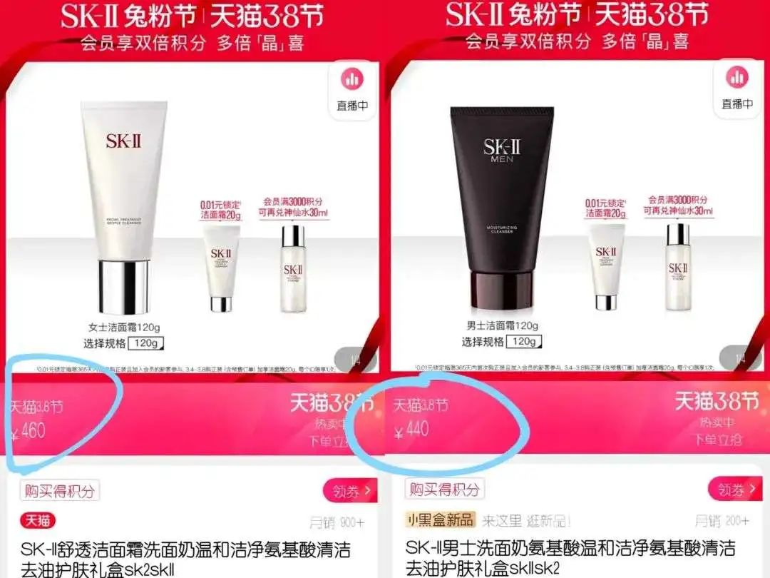 图/某品牌洁面男女款价格不同 来源/楠楠提供