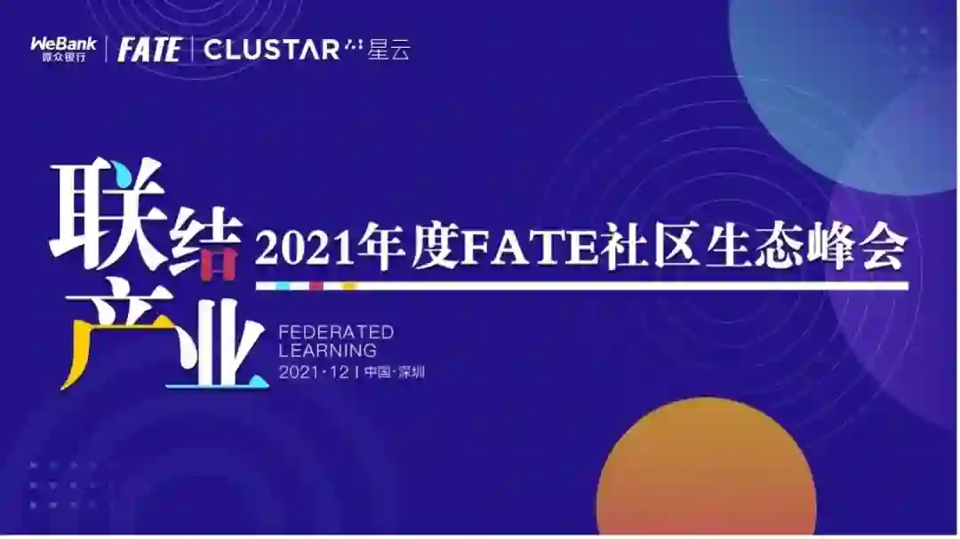 12月18日,中国深圳,FATE社区2021年度生态峰会即将召开。这次峰会由联邦学习 FATE 开源社区联合星云 Clustar 共同举办,将集中展示近年来国内联邦学习的研究和应用成果,涵盖金融、医疗、通信等重点行业。