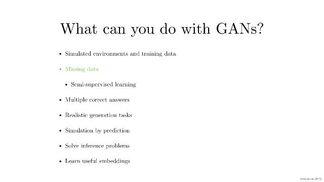 · 在更多的情况是,我们会面临缺乏数据的情况,我们可以通过生成模型来补足。比如,用在半监督学习中;