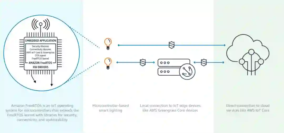2015年,AWS增加了特定的物联网(IoT)功能,推出Amazon FreeRTOS,是一款适用于微控制器的操作系统,可让用户轻松地对低功耗的小型边缘设备进行编程、部署、安全保护、连接和管理。Amazon FreeRTOS 以FreeRTOS 内核为基础,并通过软件库对其进行扩展,从而可以轻松地将小型低功耗设备安全连接到AWS IoT Core 等AWS 云服务或运行AWS Greengrass 的功能更强大的边缘设备。