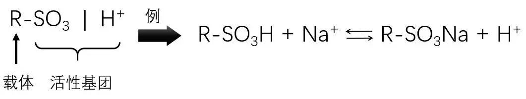 阳离子交换树脂可以吸收水中的阳离子(如Na+,K+,Mg2+,Ca2+等),即树脂上的H+被置换到水中并与水中的阳离子生成相应的无机酸: