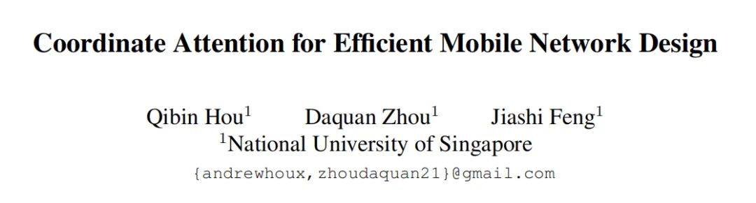 本文是新加坡国立大学Qinbin Hou&Jiashi Feng等人在注意力机制方面的一次探索,针对如何有效提升移动网络的卷积特征表达能力,以及通道注意力(如SE)机制能够有效建模通道间相关性但忽视了位置信息的问题,提出了一种的新颖的注意力机制:Coordinate Attention。