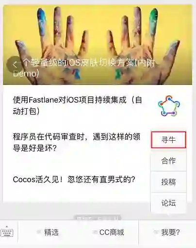 CC的“寻牛启事”一直都在火热进行中!我们拥有110万移动开发者的官网www.cocoachina.com,和12万粉丝的官微,更有每月中举办的线下CVP开发者沙龙。