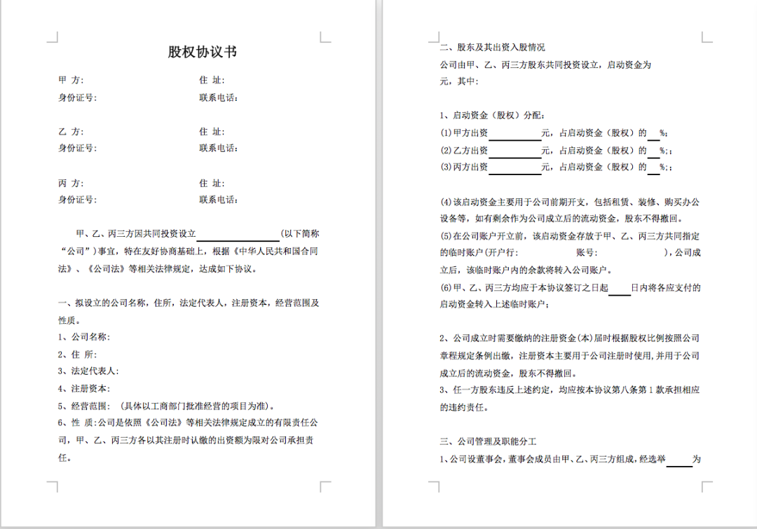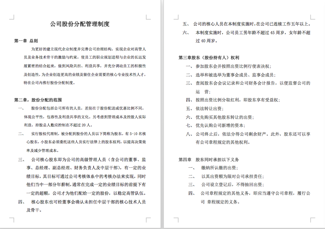 春节福利:【股权分配方案】限时免费领取