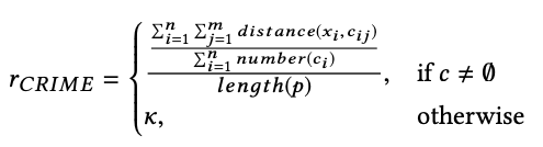 其中n是路径中线条的数量,m是每个节点一定半径内的犯罪事件数量,x是路线中线段的中点,c是每个半径上发生的犯罪事件,p是路线,k是超参数。