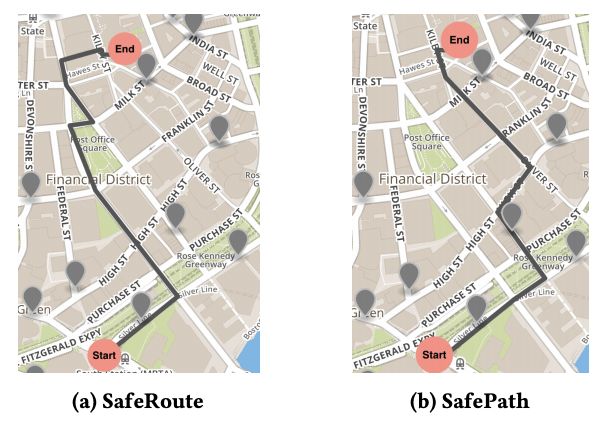 在这篇论文中,我们的研究对象仅限于非机动车道(例如可以走路或骑自行车的区域)。在美国,想纽约、波士顿、旧金山这样的城市,通常有很多步行街道。我们想计算出到达目的地的最短距离,并且危险系数低的步行方案。现有的导航方法也能覆盖大城市,但他们没有考虑犯罪率的问题,忽略了小范围的犯罪区域。