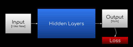 输入为“I like New”,下一个单词预测为“York”,情感预测为正面。