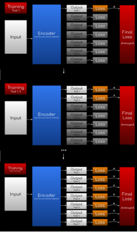 持续学习还可以轻松添加新任务-只需在序列中添加一个额外的步骤即可(例如,第3步:训练任务1、2、3)。但是,请记住,必须训练所有先前的任务以及新任务,以确保将损失函数相加。