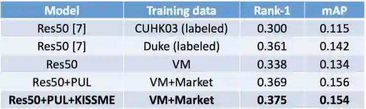 表 1. 行人重识别结果对比。Rank-1 和 mAP 都是越高越好。