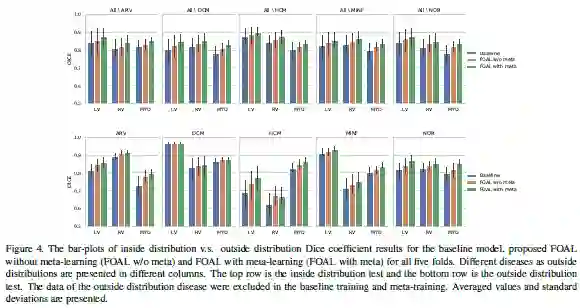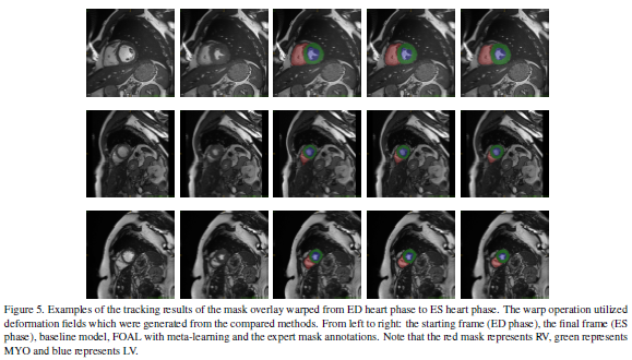 心脏MRI视频动态估计对于评估人体心脏的解剖结构和功能至关重要。在临床部署中,由于训练和测试数据集之间分布不匹配,深度学习模型的性能急剧下降。这篇论文提出了一种新的快速在线自适应学习(Fast Online Adaptive Learning ,FOAL)框架,包括一种基于在线梯度下降的优化器,该优化器由元学习器进行优化。元学习器使在线优化器能够执行快速而强大的调整。这篇论文通过在两个公共临床数据集上的广泛实验评估了所提方法。结果表明,与离线训练的跟踪方法相比,FOAL准确性更高。
