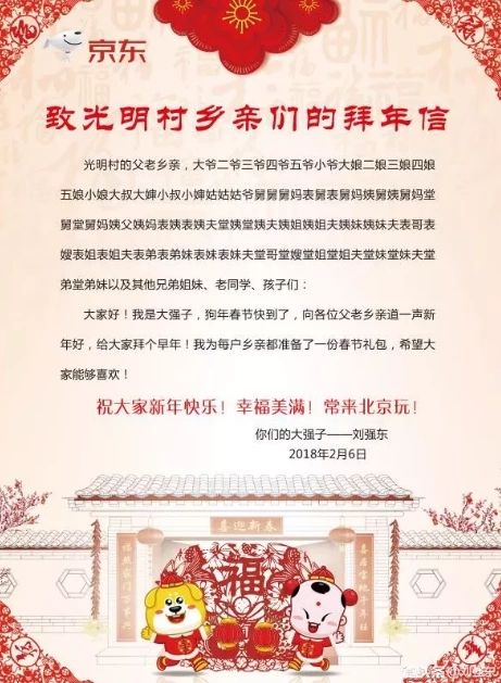 刘强东给全体村民的拜年信:自称大强子,为乡亲准备了一份春节礼包