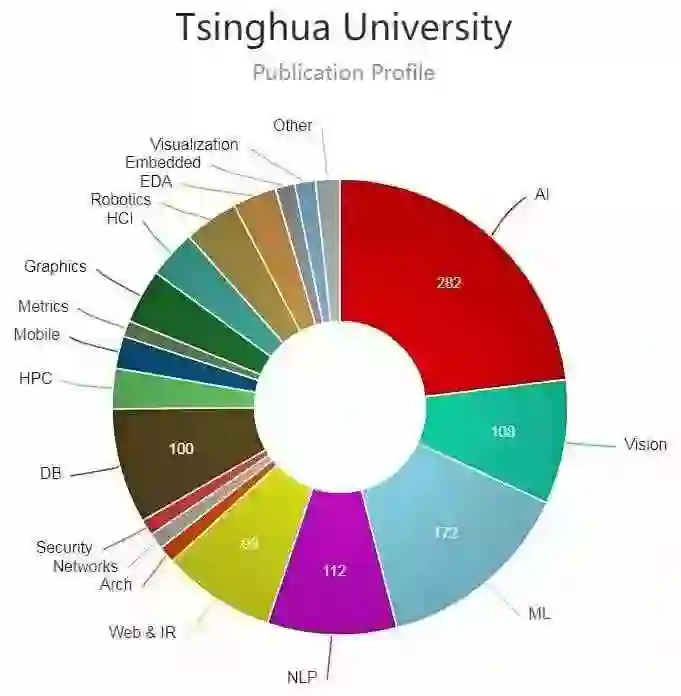 除此之外,你还能查看各高校的文献发表方向细分图,如清华大学的文献发表方向如下: