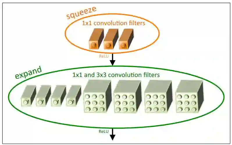 1 Fire module 与 GoogLeNet 思想类似,采用 1*1 卷积对 feature map 的维数进行「压缩」,从而达到减少权值参数的目的;