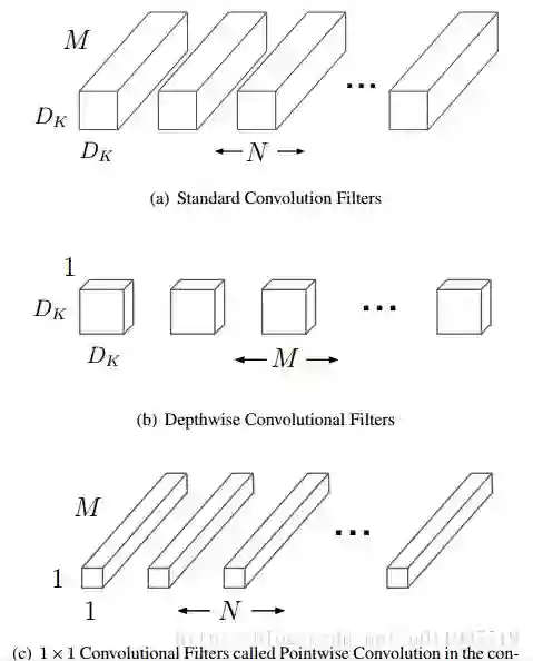 Standard convolution、depth-wise convolution 和 pointwise convolution 示意图如下: