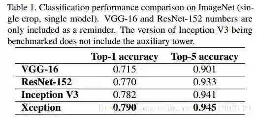 Xception 并不是真正意义上的轻量化模型,只是其借鉴 depth-wise convolution,而 depth-wise convolution 又是上述几个轻量化模型的关键点,所以在此一并介绍,其思想非常值得借鉴。