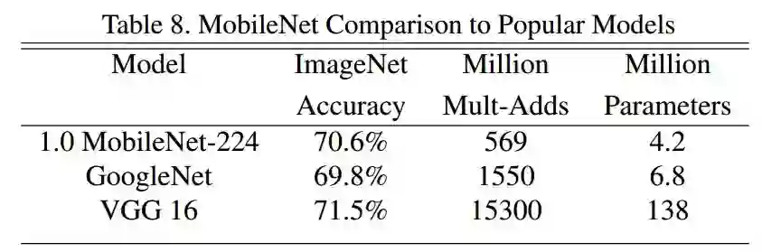 1.0 MobileNet-224 与 GoogLeNet 及 VGG-16 的对比: