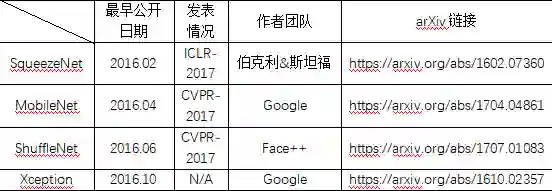 其中 ShuffleNet 论文中引用了 SqueezeNet;Xception 论文中引用了 MobileNet