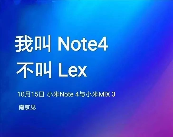 据IT之家网友投稿,小米新品发布会时间疑似曝光,根据图片给出的内容来看,小米将在本月15日在南京召开新品发布会,届时将公布小米MIX 3手机和小米Note 4手机。而之前传出的Lex手机其实就是小米Note 4。