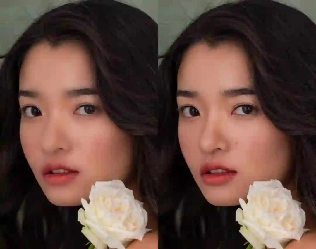 对比之下美图的实时美颜算法既没有弱化面部结构,对细微瑕疵也进行了精细化处理,脸部皮肤呈现干净通透、清晰自然的高级质感。