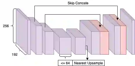 上采样使用最近邻插值加 3x3 卷积替代反卷积和双线性插值,以便于加速。