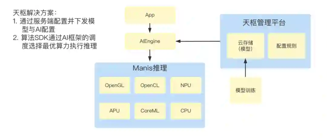 在实际应用中,Manis 包含 AI 服务、天枢系统、运维监控等在内的多项功能,主要通过以下三个体系模块来实现对算法的优化加速: