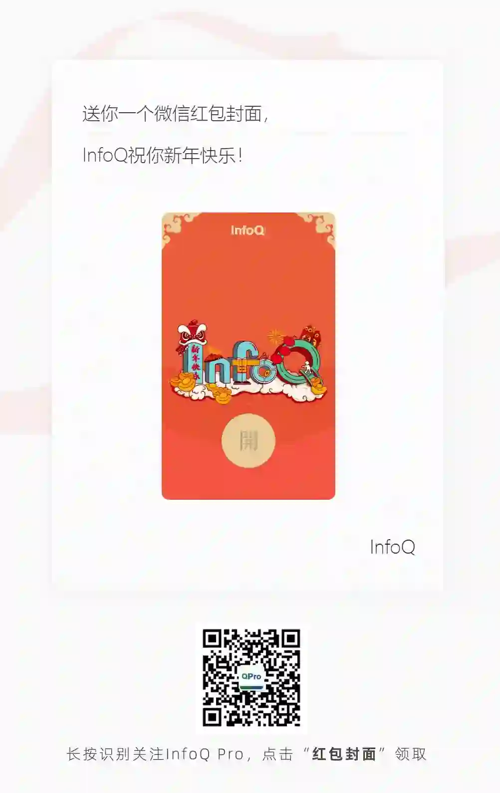 InfoQ 虎年限定红包封面来啦!长按识别下方二维码关注 InfoQ Pro 公众号,点击菜单栏中间“红包封面”即可领取!数量有限,手快有,手慢无!