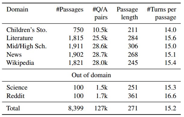 表 2:CoQA 中域的分布
