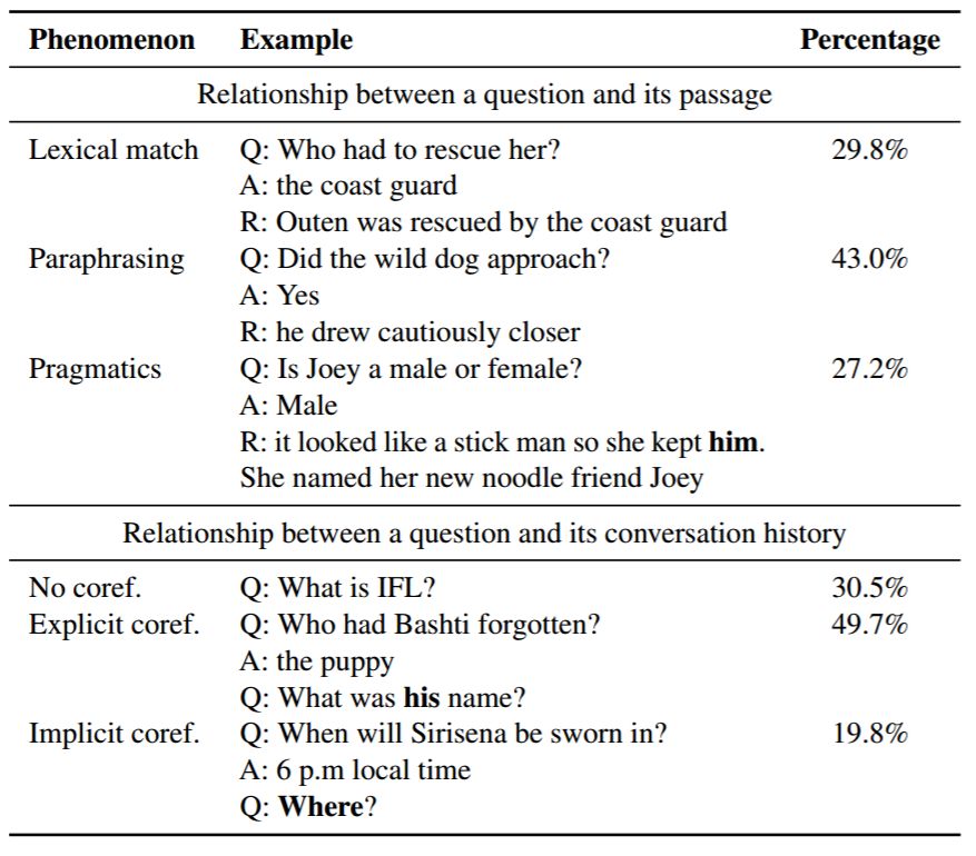 表 5:CoQA 问题中的语言现象。