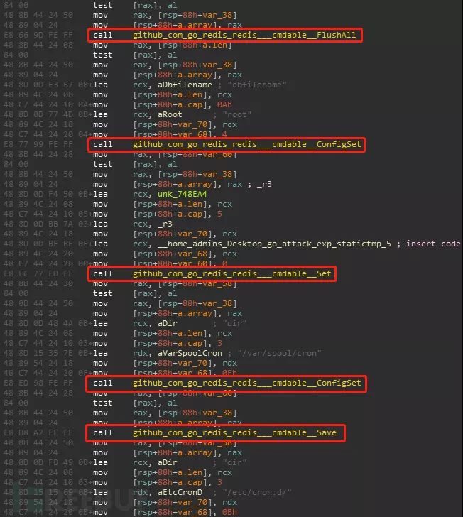 Redis登陆不需要用户名,爆破会使用如下几个弱密码:admin、redis、root、123456、password、user、test。登陆成功后,蠕虫会先调用FlushAll删除所有数据库,然后创建一个root数据库来存放恶意代码,该代码同样会被创建到/var/spool/cron和/etc/cron.d中以实现持久化潜伏。
