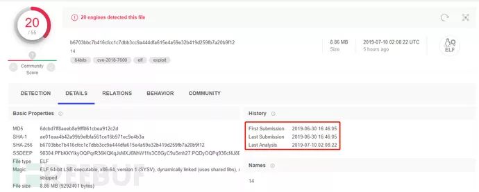 目前为止,恶意软件较少会使用Go语言编写,这是由于依赖库的原因,编译出来的程序较为冗余,如下通过VT可以得知,该样本有近9M那么大。然而,使用Go语言也有一个好处,就是易于集成第三方的库。