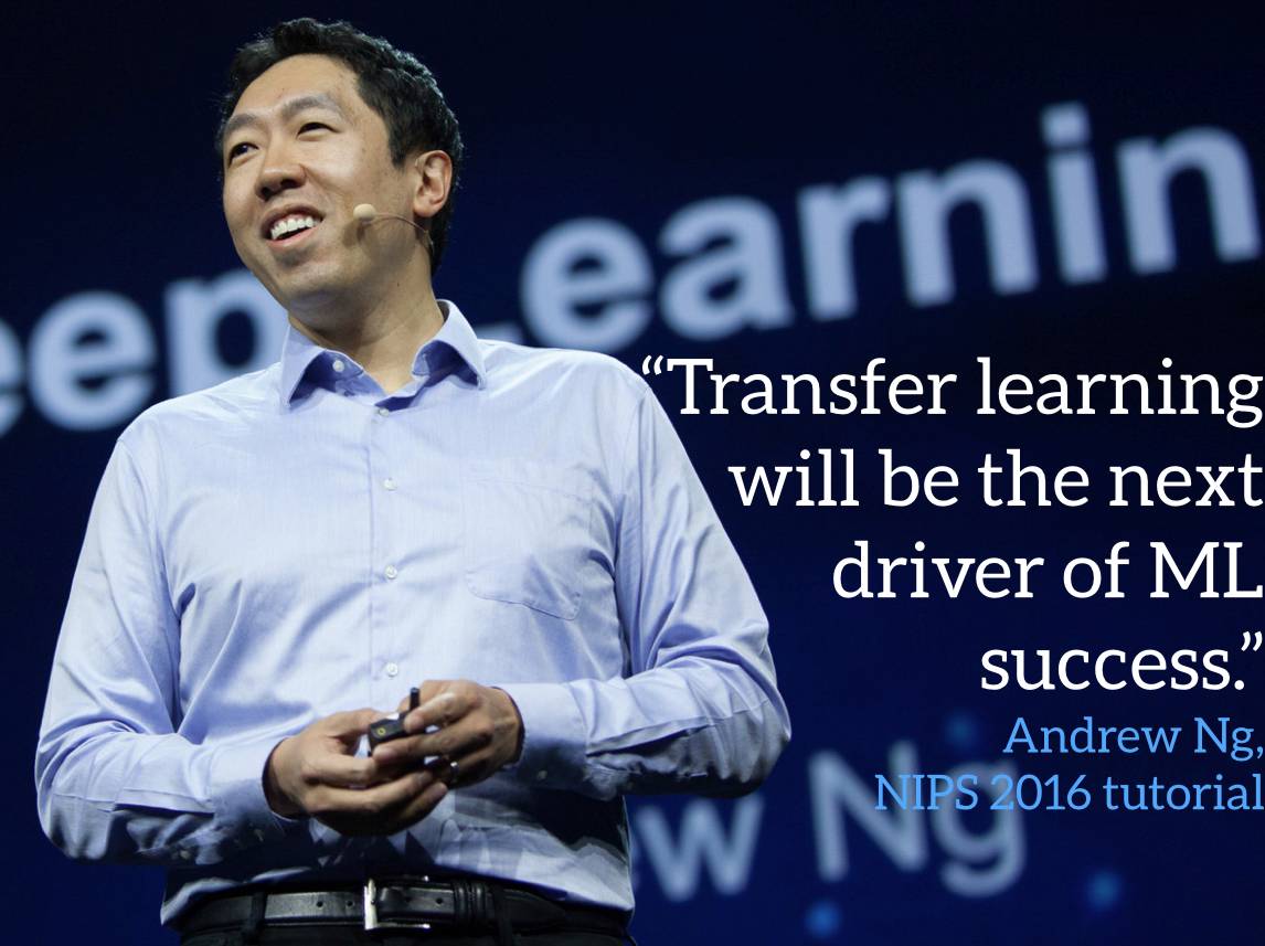 前百度首席科学家、斯坦福的教授吴恩达(Andrew Ng)在广受流传的 2016 年 NIPS 会议的教程中曾经说过:「迁移学习将会是继监督学习之后的下一个机器学习商业成功的驱动力」。