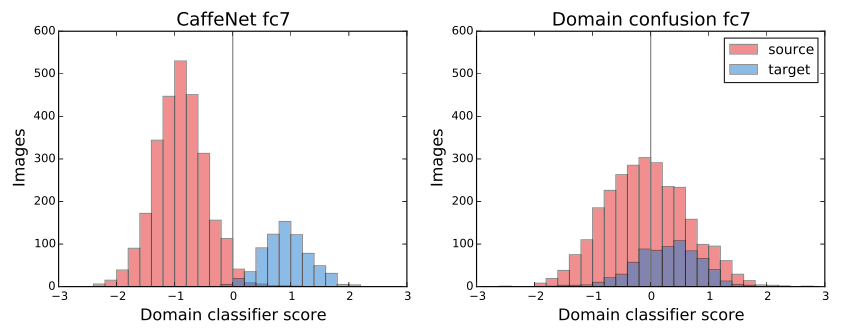 图 18:常规模型和域混淆模型的域分类得分比较 (Tzeng et al, 2015)