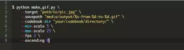 这将创建一系列各种比例的马赛克,然后将它们组合在一起,形成每秒具有指定帧的GIF。你可以用—ascending参数来调整顺序。