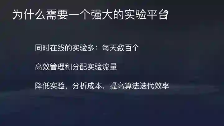强大的实验平台非常直接的优点是,当同时在线的实验比较多时,可以由平台自动分配流量,无需人工沟通,并且实验结束流量立即回收,提高管理效率。这能帮助公司降低分析成本,加快算法迭代效应,使整个系统的算法优化工作能够快速往前推进。