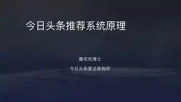 以下为曹欢欢关于《今日头条算法原理》的分享内容(已授权):