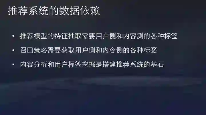 内容分析和用户标签是推荐系统的两大基石。内容分析涉及到机器学习的内容多一些,相比而言,用户标签工程挑战更大。