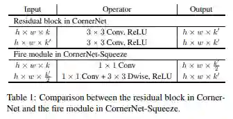 受SqueezeNet启发,CornerNet-Squeeze将 residual block 替换为SqueezeNet中的 Fire module