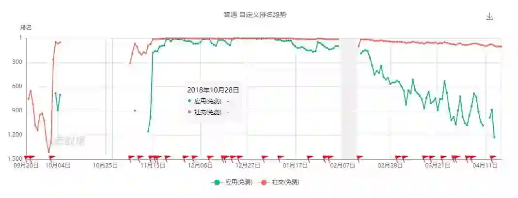光从排名来看,音遇的曲线自11月中旬上扬之后,一直在高位维持到2月份;比起同为社交类的“子弹短信”、“ZEPETO”、以及游戏类的“旅行青蛙”都要更加稳定和持久。