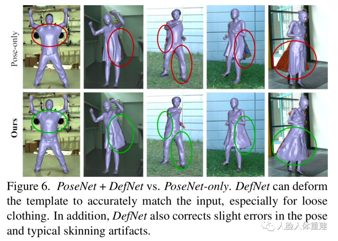 下图展示了 DefNet 的改进效果,其能够使得网格更加贴合图像中的人体轮廓。