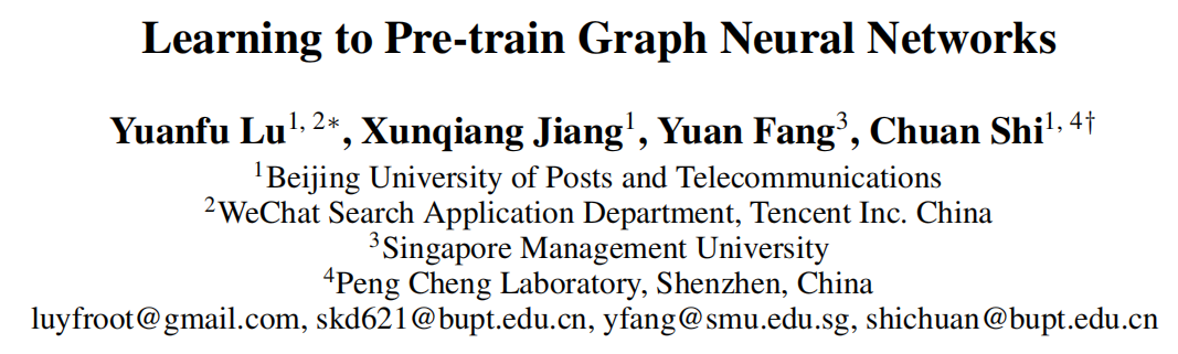 这篇论文的作者来自北京邮电大学、腾讯、新加坡管理大学和鹏城实验室的。论文非常有趣,是讲怎样学习预训练GNN的。