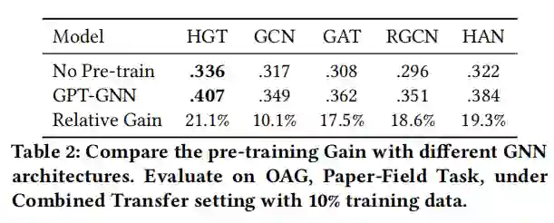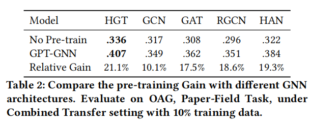 将HGT,将GCN,GAT,RGCN,HAN作为基础模型,发现在经过预训练之后,他们的表现会更好。能达到10%以上的提升。