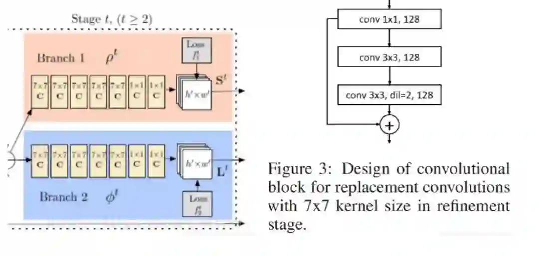 而Lightweight OpenPose作者测试发现原openpose的refinement stage的5个阶段,从第一个refinement stage1之后,正确率没有提升多少,但是运算量就加大了。并且还发现了refinement stage网络的关键点定位(heatmap)和关键点组合(pafs)两部分的两条分支运算,有不少操作是一样的,造成运算冗余。于是主要进行了以下优化: