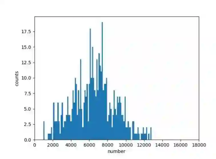 再看看目标场景采集的几百张图片的关键点区域面积分布,范围是2000-12000,且峰值在6000-8000: