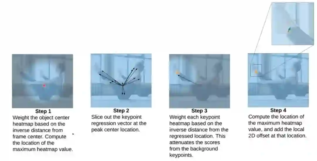 通过官方博客的只言片语以及Netron可视化网络,对模型有了初步了解,官方宣称是基于CenterNet做的修改,但是修改了很多(The prediction scheme loosely follows CenterNet, with notable changes that improve both speed and accuracy)。具体来说,使用了mobilenetv2+fpn作为backbone,输出四个header,最后经过后处理输出一个最靠近图片中心的人的关键点。由此可知,它也是属于Bottom-Up的流派,同时通过关键点回归的范围进行加权,只输出最靠近中心的一个人的关键点,和我们的场景绝佳匹配,因为就Lightweight OpenPose而言,其余人的PAF信息其实也是多余的。
