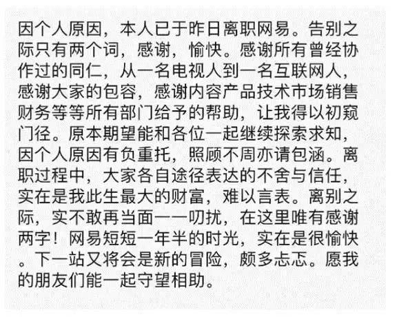 1、网易副总编辑杨彬彬将离职,具体原因尚未知